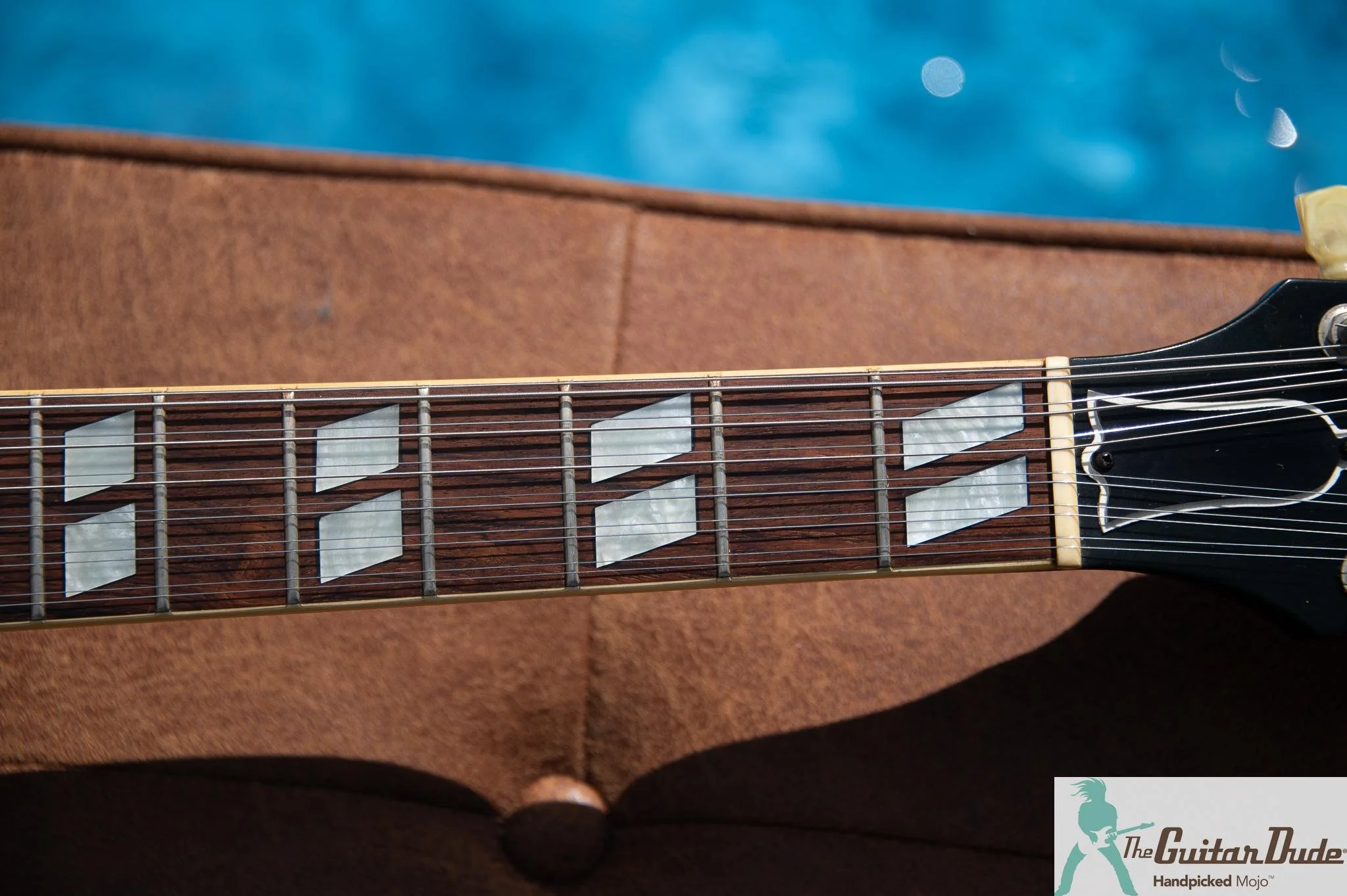 Loaded with original Maxon humbuckers that deliver rich, vintage Japanese PAF-style tone: fat, singing leads on the 6-string neck and jangly, orchestral chime on the 12-string. ABR-style bridges, smooth tuners, and flawless electronics that fire on all cylinders after 45+ years. This thing sings – whether you’re channeling Page, doing dual-neck theatrics onstage, or just jamming at home.