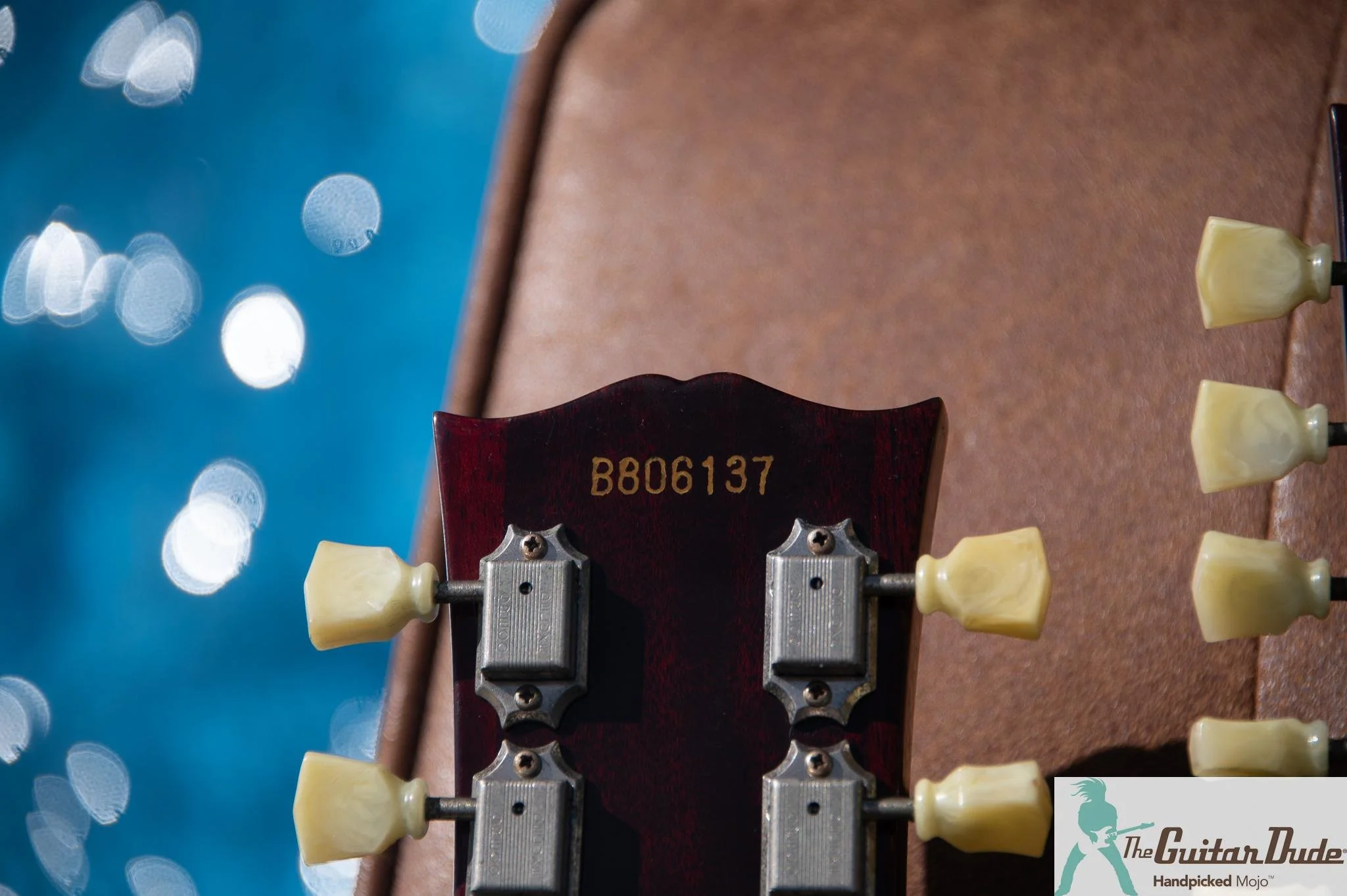 This beauty has lived the rock life and wears it proudly. Gorgeous overall with that deep cherry glow, but it shows authentic natural playwear: light dings, dents, and scratches from decades of gigs and practice. A few small chips along the back bottom edge add to the battle-scarred character – nothing structural, just the kind of patina that makes a vintage axe feel like a real player’s guitar. Necks are dead straight, frets have plenty of life left, and everything functions perfectly. Comes with its original-style case (or soft gig bag depending on the buyer – let me know your needs).