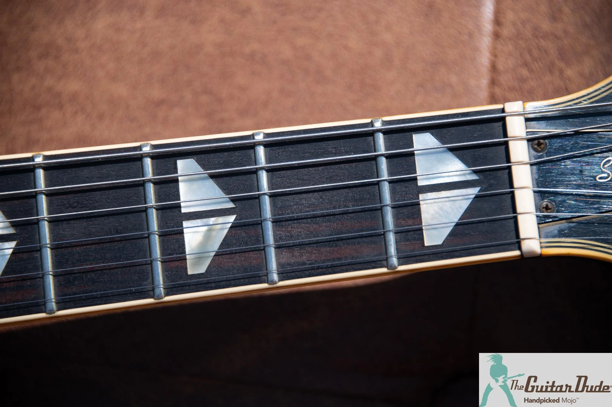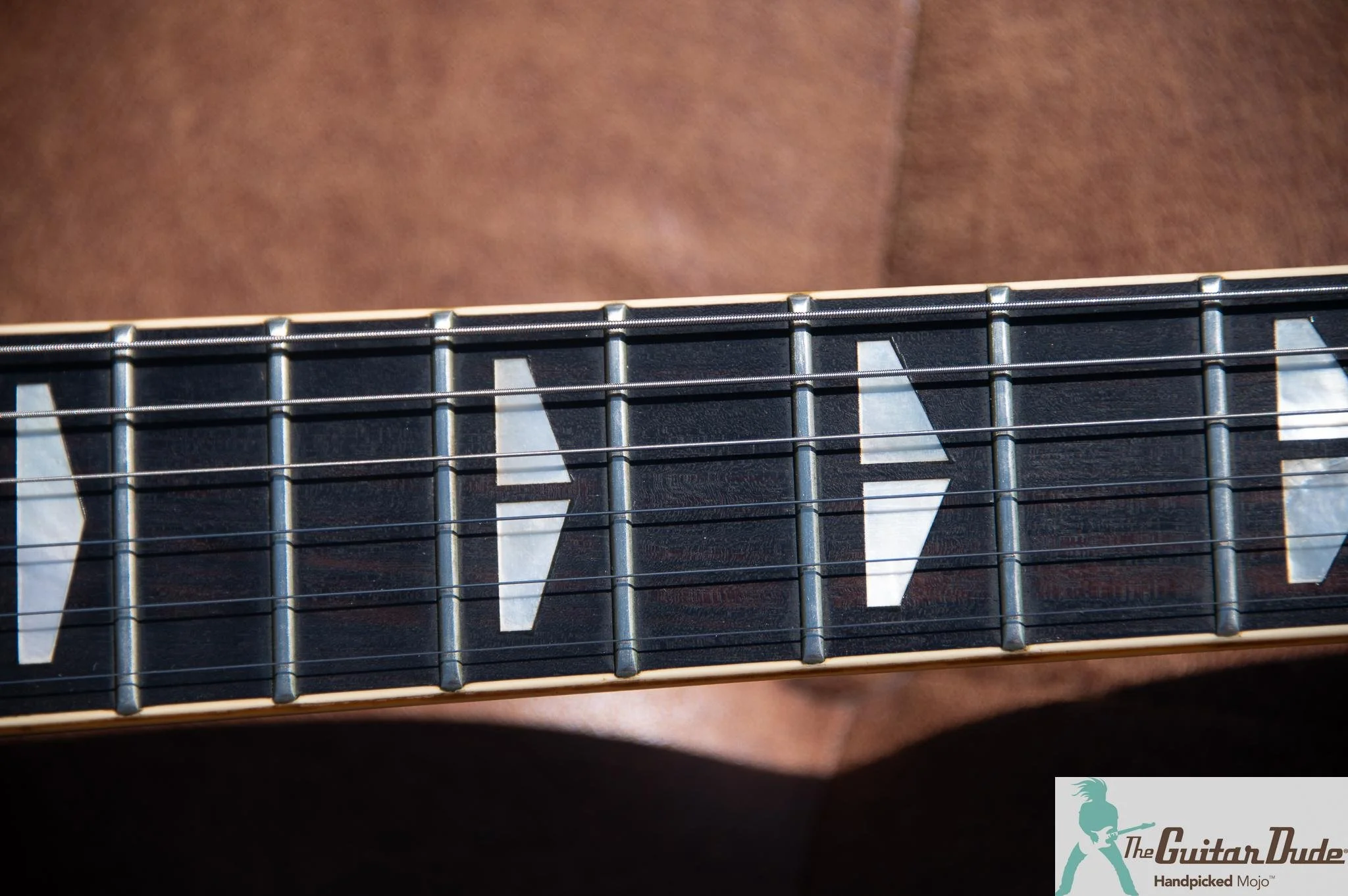 This guitar is professionally set up and dialed in for optimal tone and playability. It has low action with no buzzing or dead spots and is an absolute joy to play. It has been deep cleaned and detailed. All guitars will arrive looking and playing great. The frets have been leveled / dressed / polished and the fingerboard was cleaned. (Unfinished Rosewood and Ebony boards get treated with Fret Doctor - a proprietary all natural oil that is the best on the market) It has brand new strings, the action was adjusted, the intonation is spot on and it plays excellent. All the electronics work flawlessly.