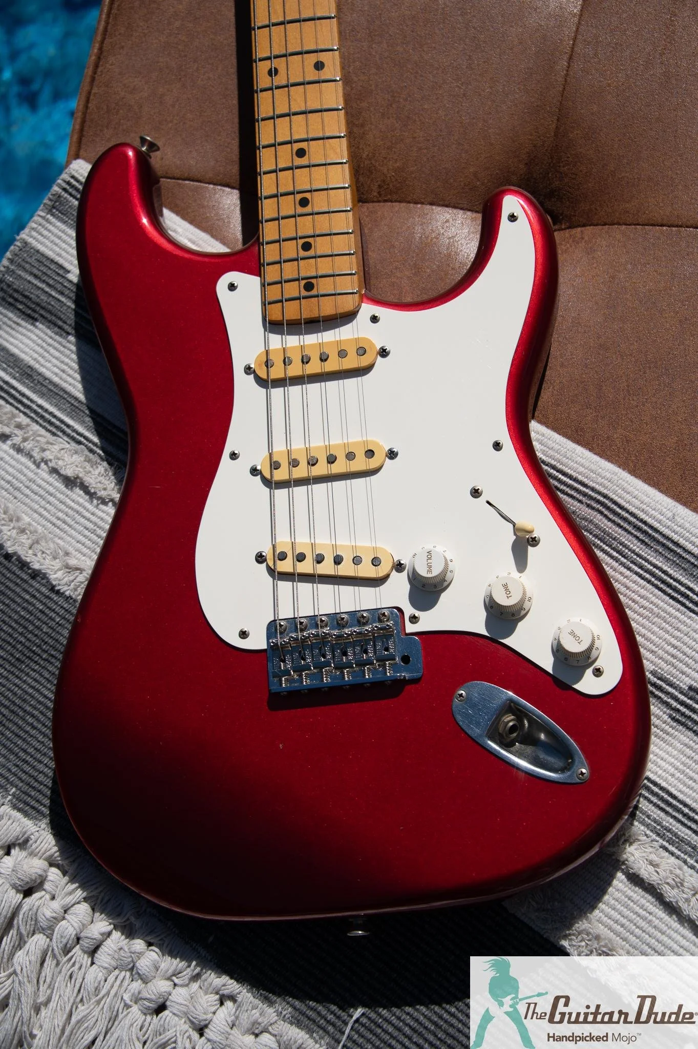 Get ready to meet the perfect Strat... I call it the Red Rocket as an homage to the original pre CBS era Strat which was also coinciding with the beginning of the space age. Well let me tell you, this Strat is OUT of THIS WORLD. It oozes perfect melodic creamy tone and plays as good as any guitar we have had come this way. To top it off it is in exceptional, near mint condition. This second year (1983) JV reissue will be sure to become your favorite axe and it is battle ready for instant gratification.