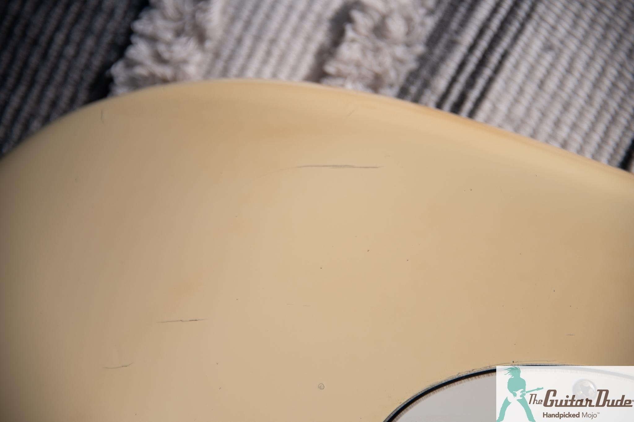 This beauty’s in good condition for its age – just natural road warrior battle scars, no drama, just a subtle patina that whispers stories of late night jams and good times had. The ash body keeps things resonant and balanced, weighing in just right for those marathon sessions without shoulder strain. There is a little discoloration around the bottom edge and little dings around the body. It also has two dings on the back of the neck (see pics) We can fill them in at no charge if you would like before shipping.