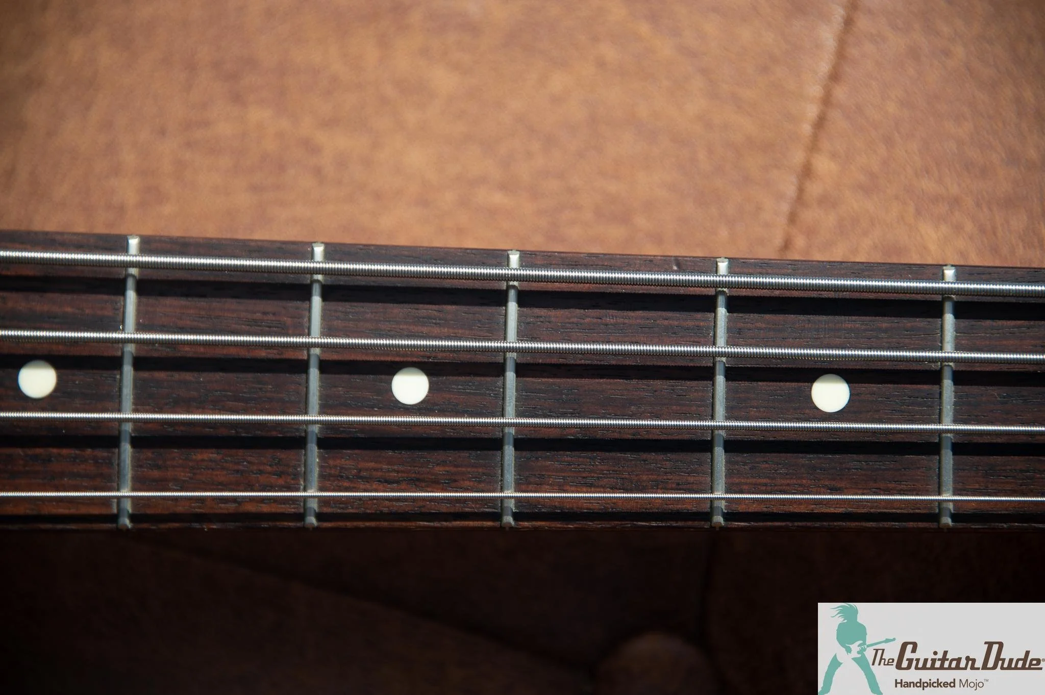 - All frets are dressed, leveled, crowned (if needed), and all frets on all guitars are polished to shine like new with no divots.