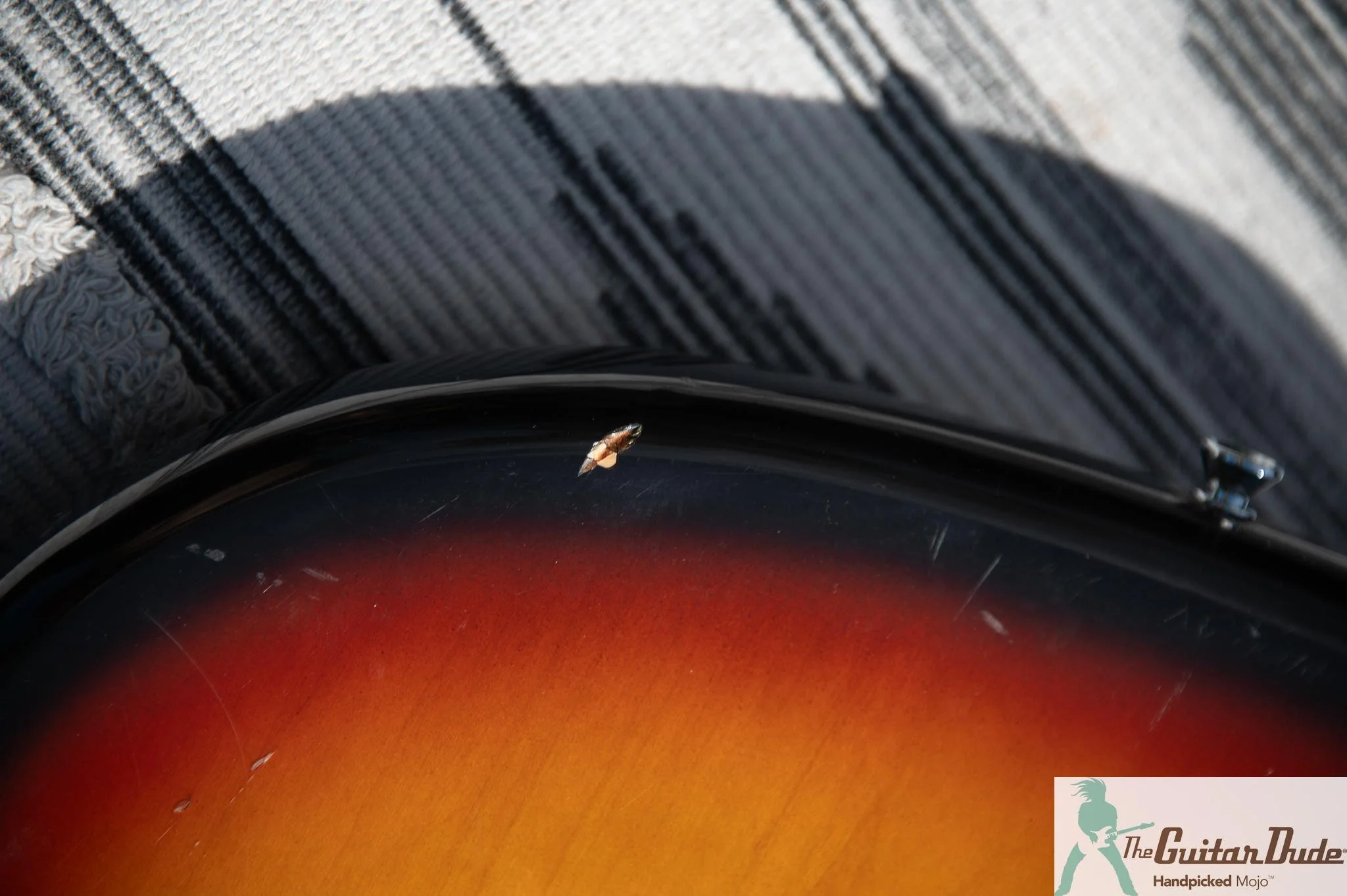 • Nice character-giving gouge on the bottom edge, an area of dings on the front (see pics) plus a few light nicks and scratches that add honest vintage mojo without compromising structural integrity