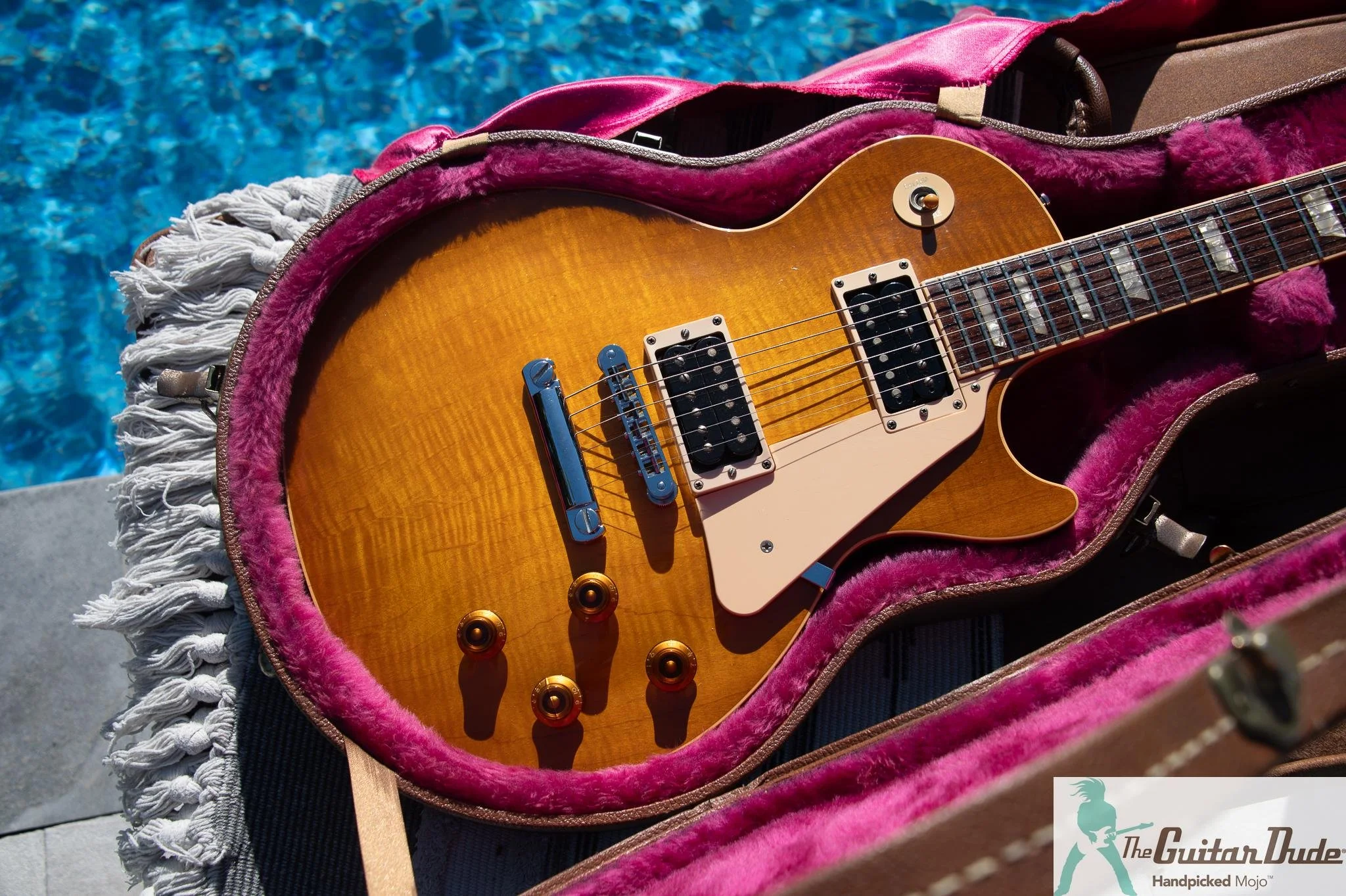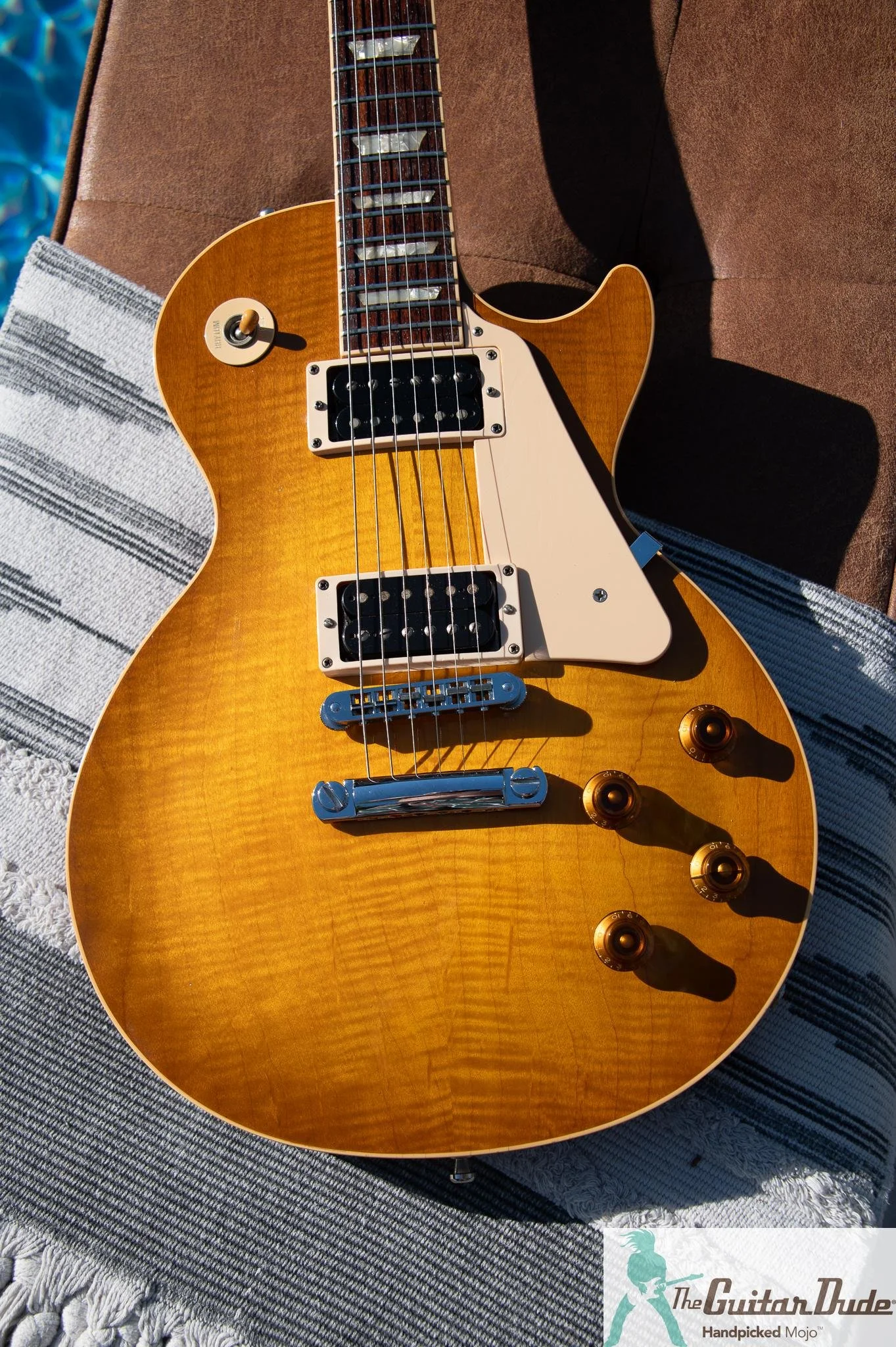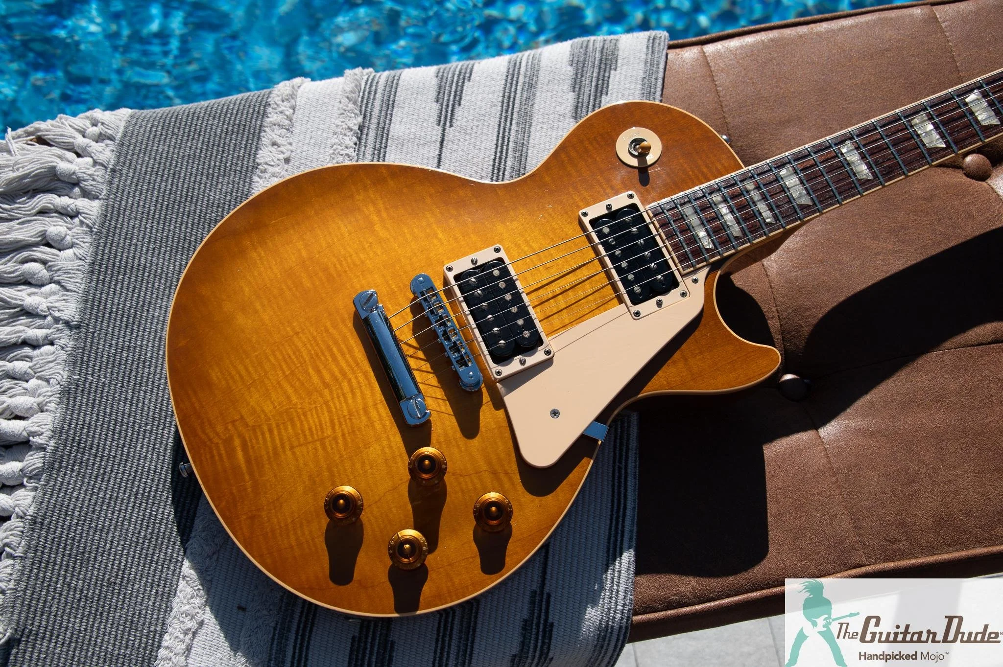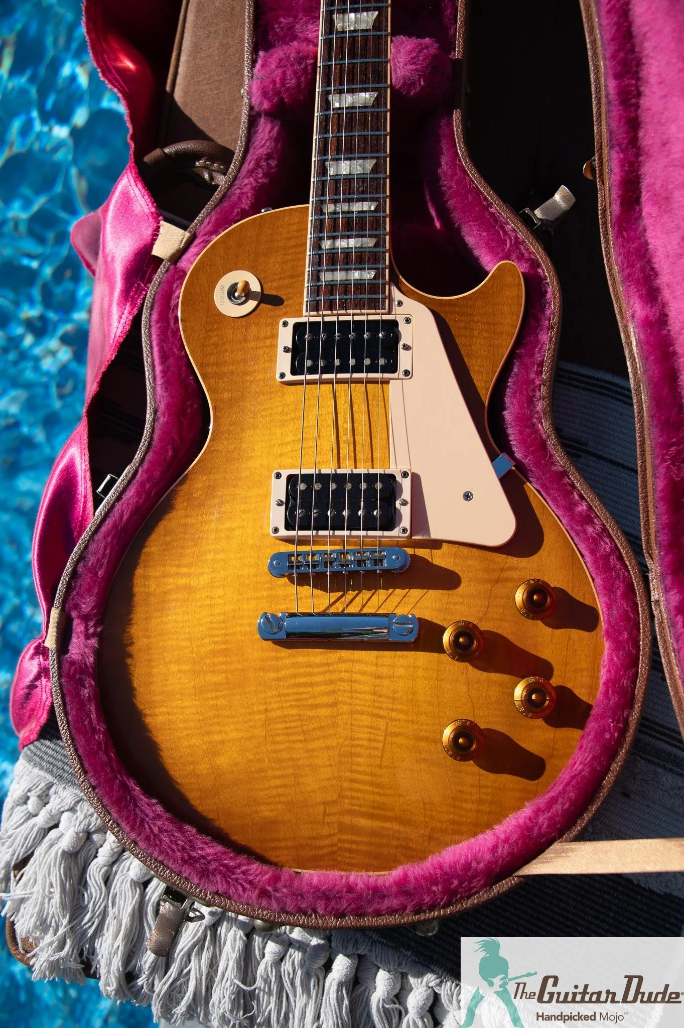 Expect buttery, vocal-like neck tones with sweet cleans and singing leads, punchy, mid-forward bridge growl that excels with overdrive and distortion, and outstanding note separation even under gain. The pickups blend beautifully, offering everything from smooth blues and classic rock sustain to aggressive, harmonically rich crunch without muddiness. Paired with the lively Good Wood-era body and that flamed maple top, this guitar sings with thick, woody warmth, long sustain, and that unmistakable Les Paul “woman tone” when you roll back the volume.