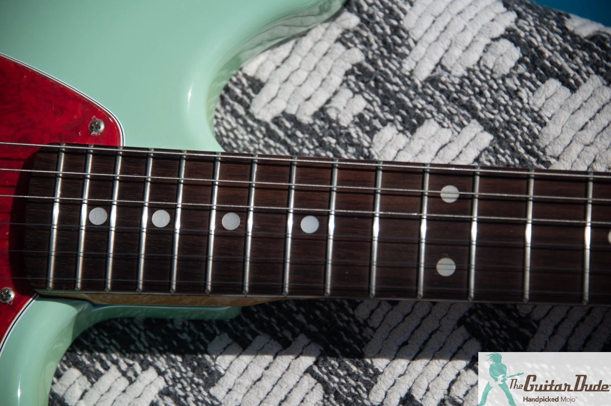 This beauty boasts a comfy medium C-profile neck that feels like an old friend, paired with a luscious dark rosewood fretboard and vintage-sized frets – freshly dressed, leveled, crowned, and polished with tons of life left for years of fretboard fireworks. Tuneful projection? Check. Killer versatility? Double check. This 'Stang vibrates with soul-shaking sustain and balance, weighing in perfectly for marathon sessions without fatigue.