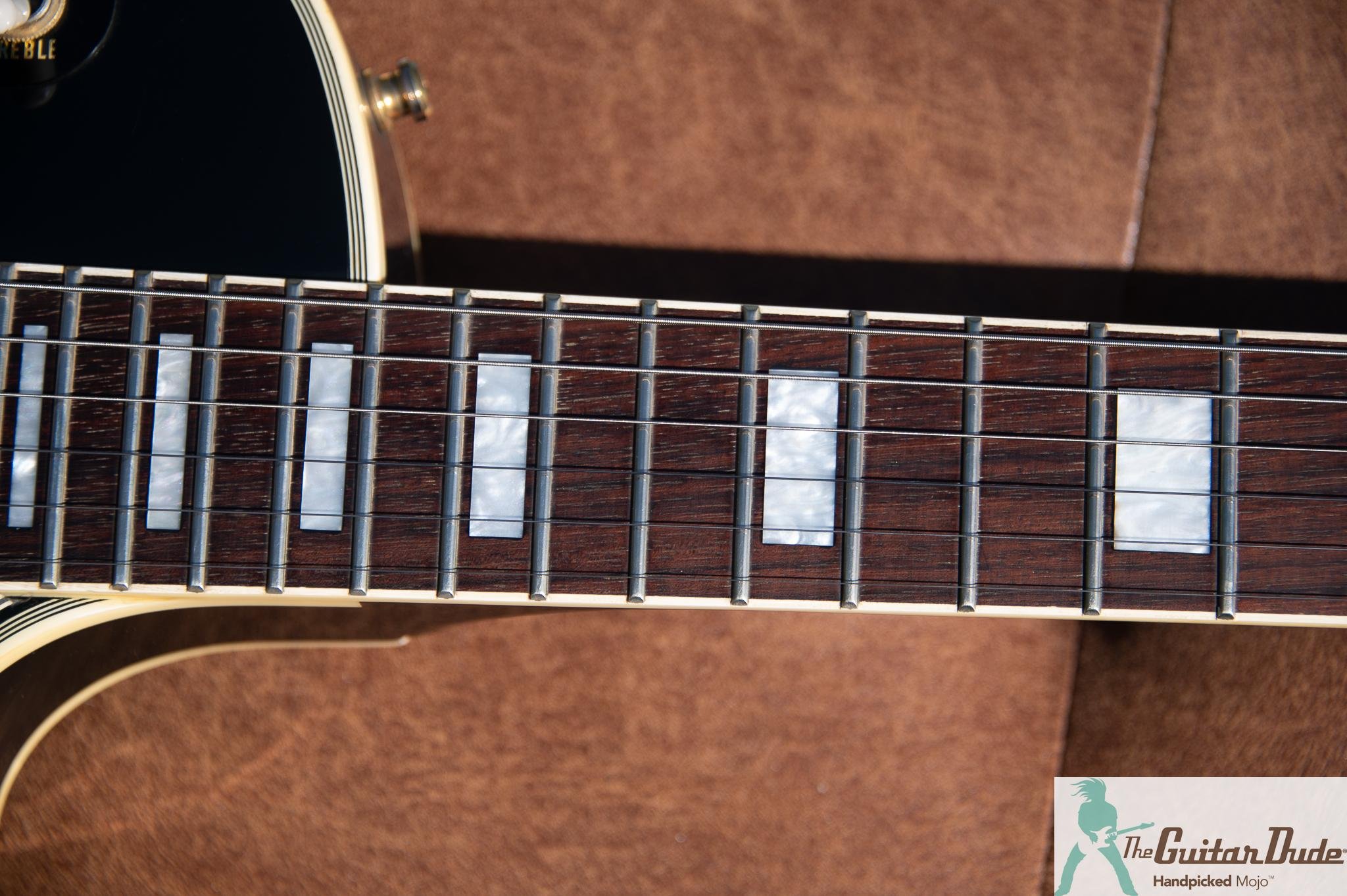 This guitar is professionally set up and dialed in for optimal tone and playability. It has low action with no buzzing or dead spots and is an absolute joy to play. It has been deep cleaned and detailed. All guitars will arrive looking and playing great. The frets have been leveled / dressed / polished and the fingerboard was cleaned. (Unfinished Rosewood and Ebony boards get treated with Fret Doctor - a proprietary all natural oil that is the best on the market) It has brand new strings, the action was adjusted, the intonation is spot on and it plays excellent. All the electronics work flawlessly.
