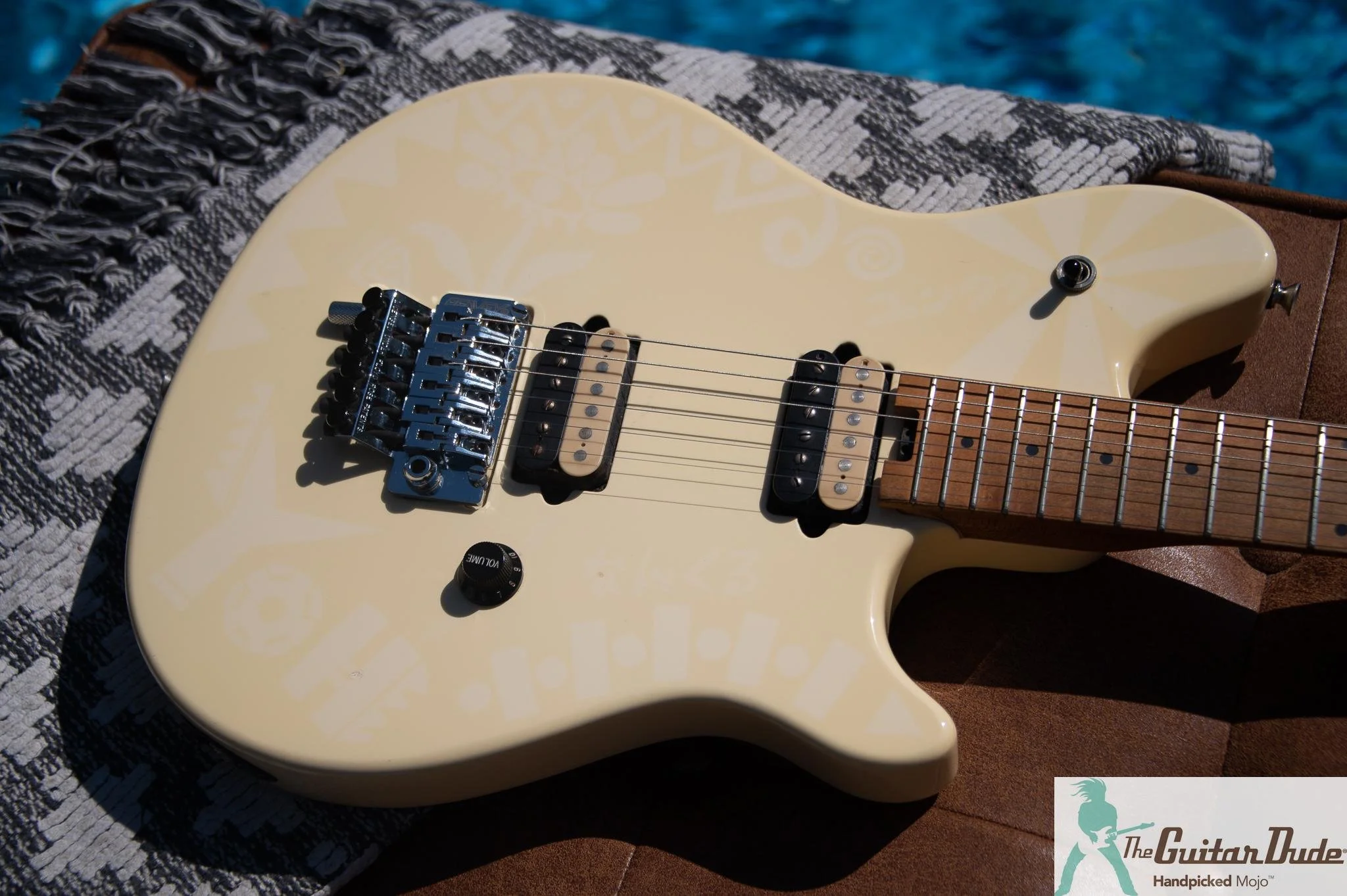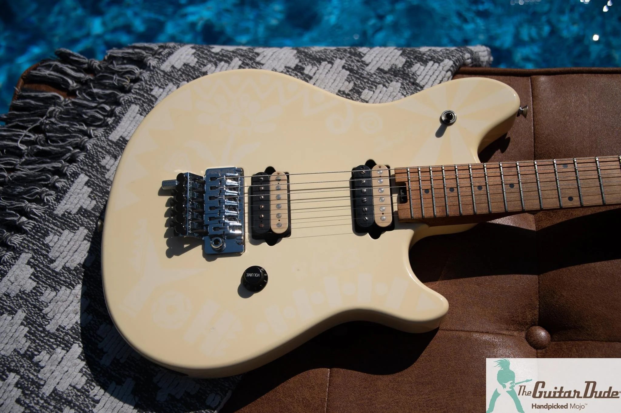 The details of the magic: a sleek, minimalist double-cut basswood body wrapped in that creamy Gloss Ivory finish that still pops under the lights like fresh-out-of-the-factory shine. The hard-rock maple neck and fingerboard (oil-finished for that ultra-fast, broken-in feel) bolts on rock-solid with dual graphite reinforcement rods for stability and lightning-fast playability. 25.5" scale, straight headstock, and that signature Wolfgang profile – it’s the kind of neck that makes you want to run scales, tap harmonics, and dive-bomb all night long. Chrome hardware, faux binding, and the unmistakable EVH headstock logo complete the look.