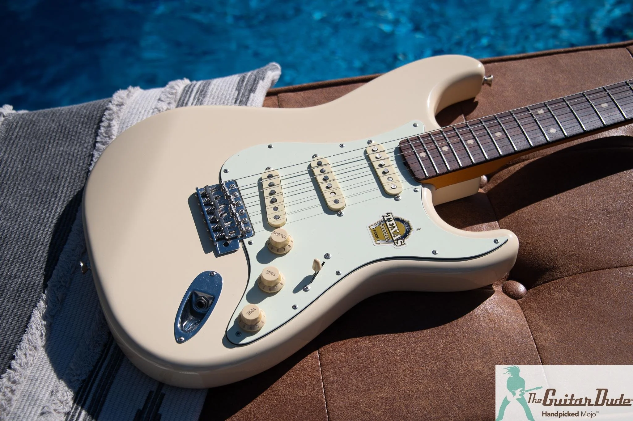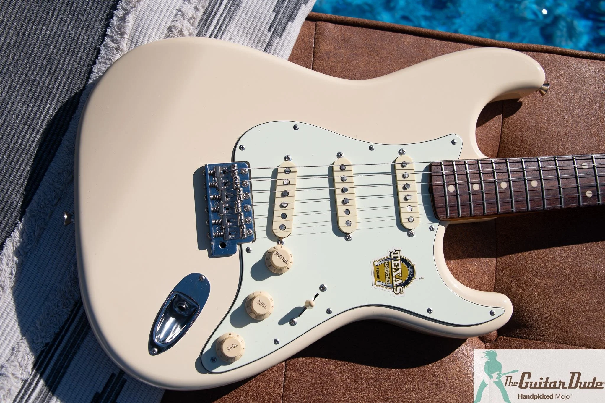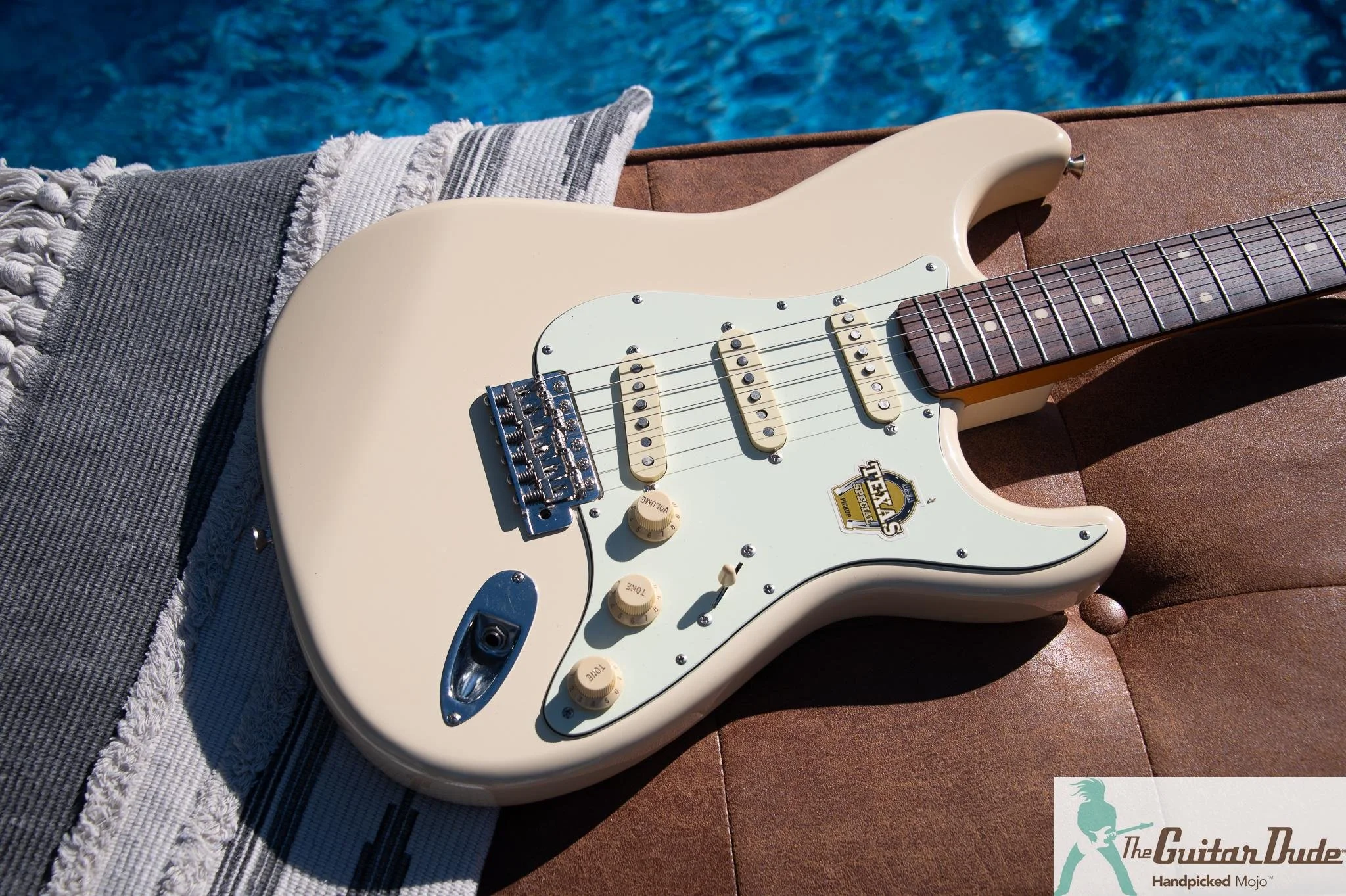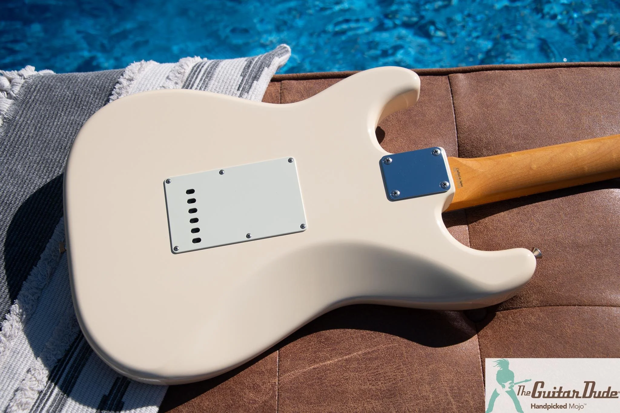 Time Warp Tone Machine: 1962 Fender Stratocaster Reissue in Vintage White – Japanese Crafted Firebreather Ready to Ignite Your Riffs!