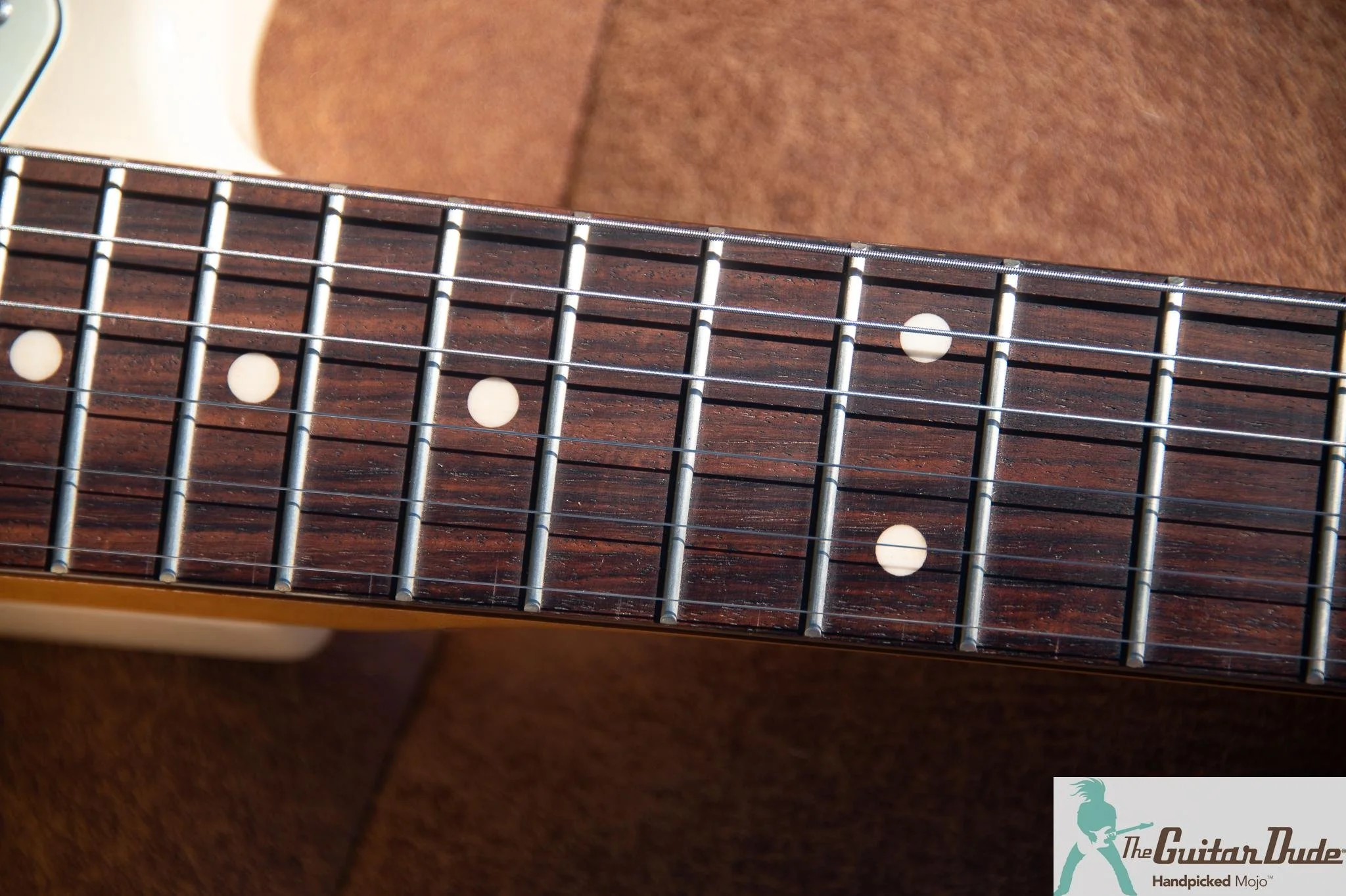 Fresh from a professional setup at The Guitar Dude HQ, where it earned rave reviews for its optimal tone and playability, this Strat's gig-ready and itching for action. No fuss, no muss – just pure, unadulterated mojo that'll make you the envy of every fretboard fiend in the room.