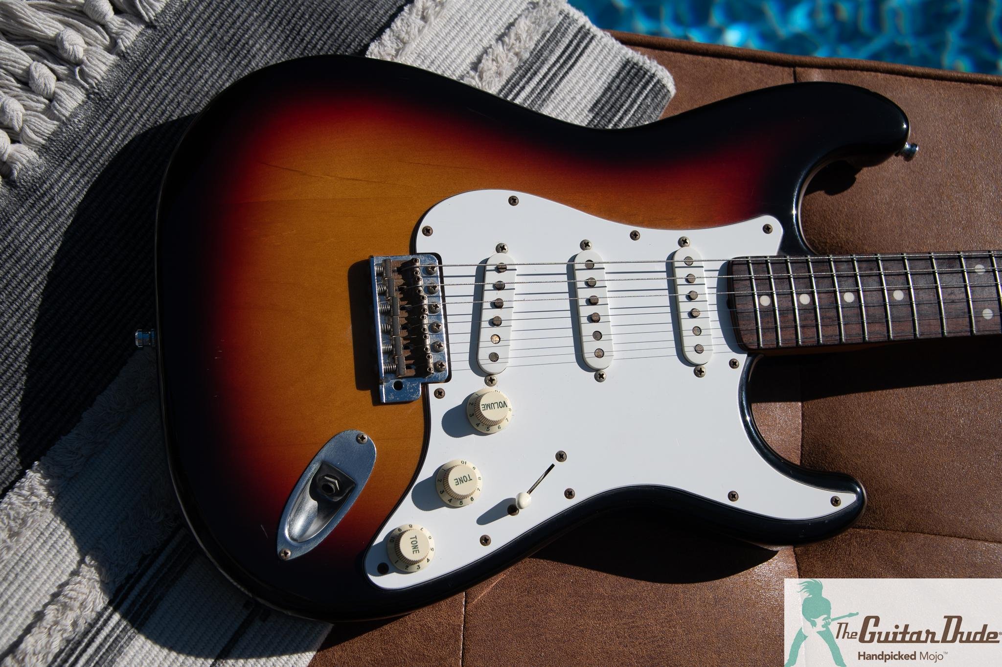 Designed to pay tribute and try to replicates the golden era Pre-CBS Strat. This guitar is acoustically resonant and well balanced. The thick and dark slab rosewood fretboard has a 7.25 vintage Fender fretboard radius and stock vintage style fret-wire that retains most its full factory height. They have been dressed/ leveled and polished and shine like glass. The neck is straight, the truss rod works flawlessly. The headstock sports a Pre-CBS small Strat shape, with correct logo and Kluson-style Gotoh tuners which turn smoothly and hold pitch nicely. The electronics all work flawlessly, and sound absolute killer. It as a well balanced feel with clear well defined mids, bright highs with plenty of classic Fender chime and sparkle. When pushed, the bridge and neck pickups have the juice needed to cut through the mix, and offer great power for smoking leads. Cosmetically, overall it is in great shape with only a handful of small dings and light surface scratches. (see pics) This vintage inspired strat is dripping with mojo, is dialed in and ready to rock!