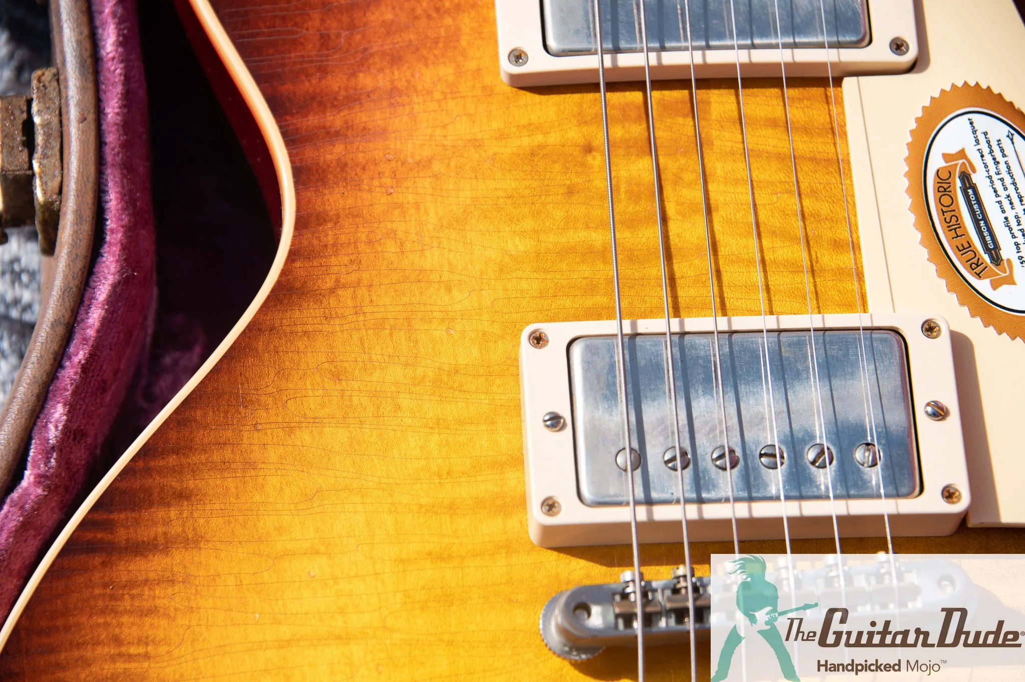 The True Historic 1959 Les Paul Standard is considered by many to be the pinnacle of Gibson's mid-century solid body electric guitars. At first a commercial failure, the '59 was adopted by some the world's greatest players like Duane Allman, Eric Clapton, Mike Bloomfield and countless others years after it was discontinued by Gibson. Today, one of the less than 700 originals built commands hundreds of thousands of dollars. The True Historic 1959 Les Paul Standard is an amazingly accurate replica of these highly valuable guitars rendered in detail so intricate that you'll find the same part numbers and tooling marks on the inside of one the guitar's pickup rings as one, small example. The True Historic 1959 Les Paul Reissue is as close as you can come to owning an original 1959 Les Paul. The True Historic Series from Gibson Custom features replica-level detail, from plastics recreated based on lab analysis of original 50's parts, to double-carved top and neck profiles and thin, hand-sanded finishes, they are the most complete, accurate and refined recreations of the guitars that form the mid-century legend of Gibson's solid body range.