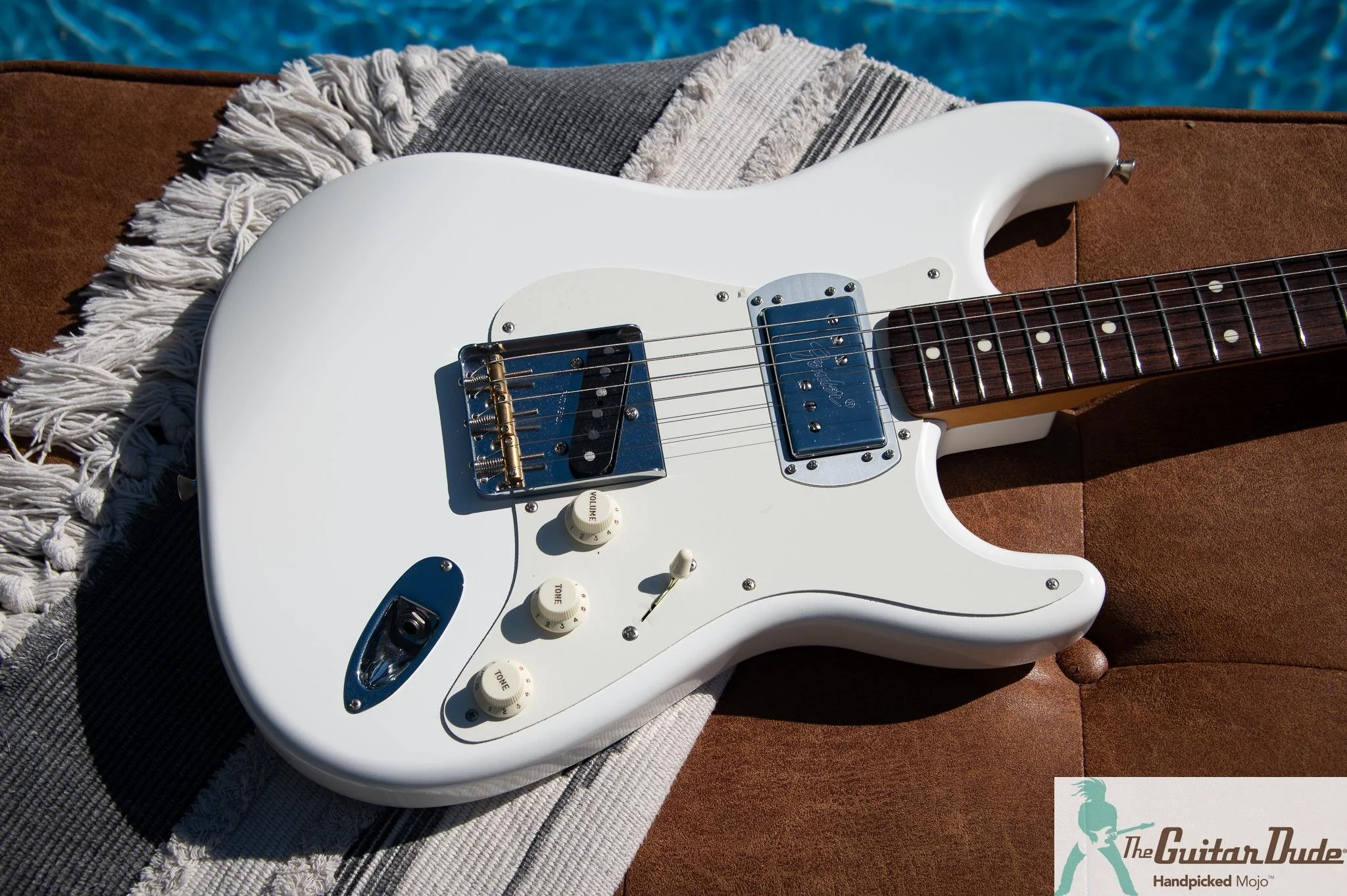 - Tele-style hardtail bridge with vintage saddles, blending Strat ergonomics with Tele stability—no tremolo wobbles here
