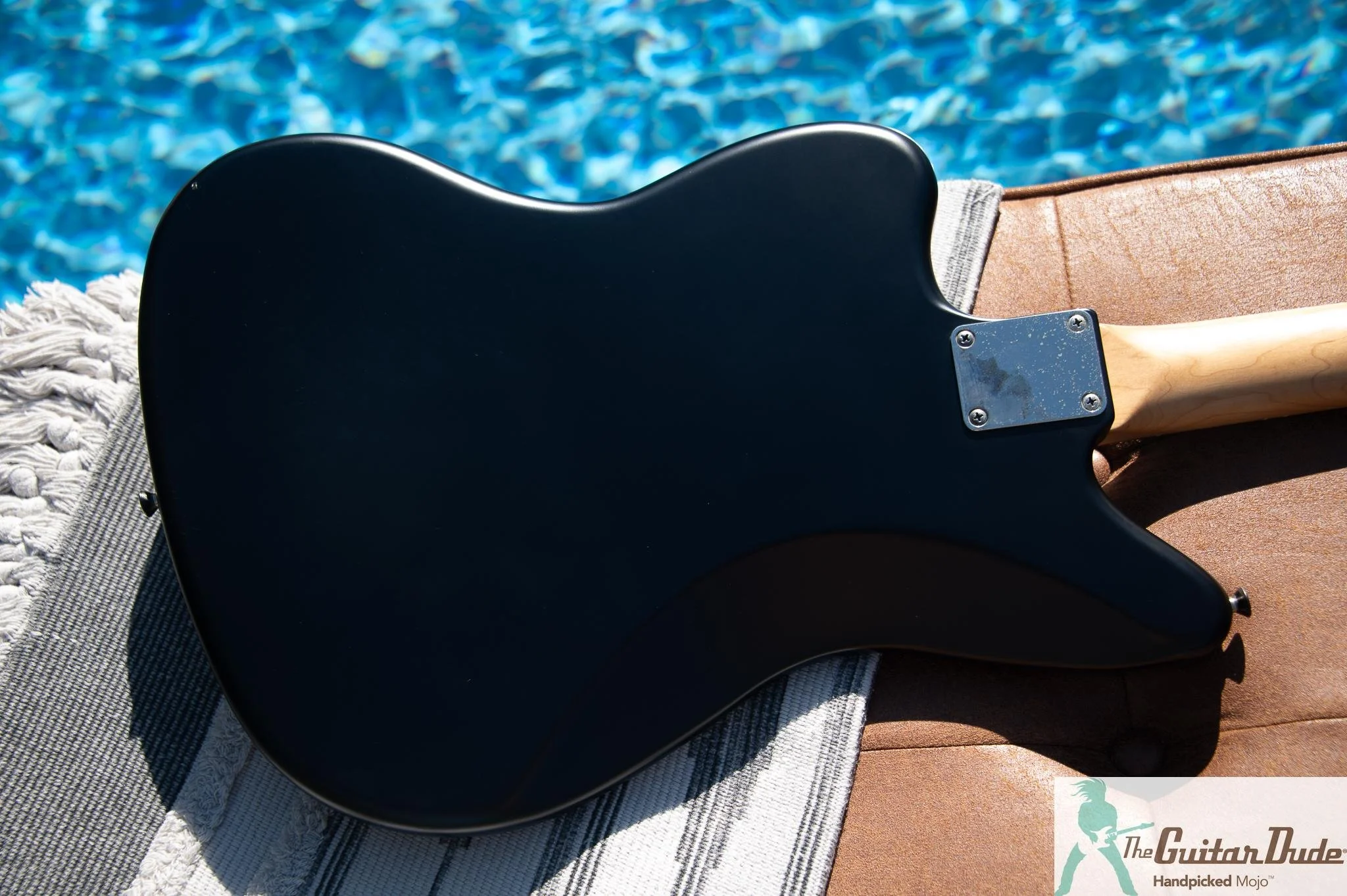 Unique Features: Red metal headstock logo, matte black finish