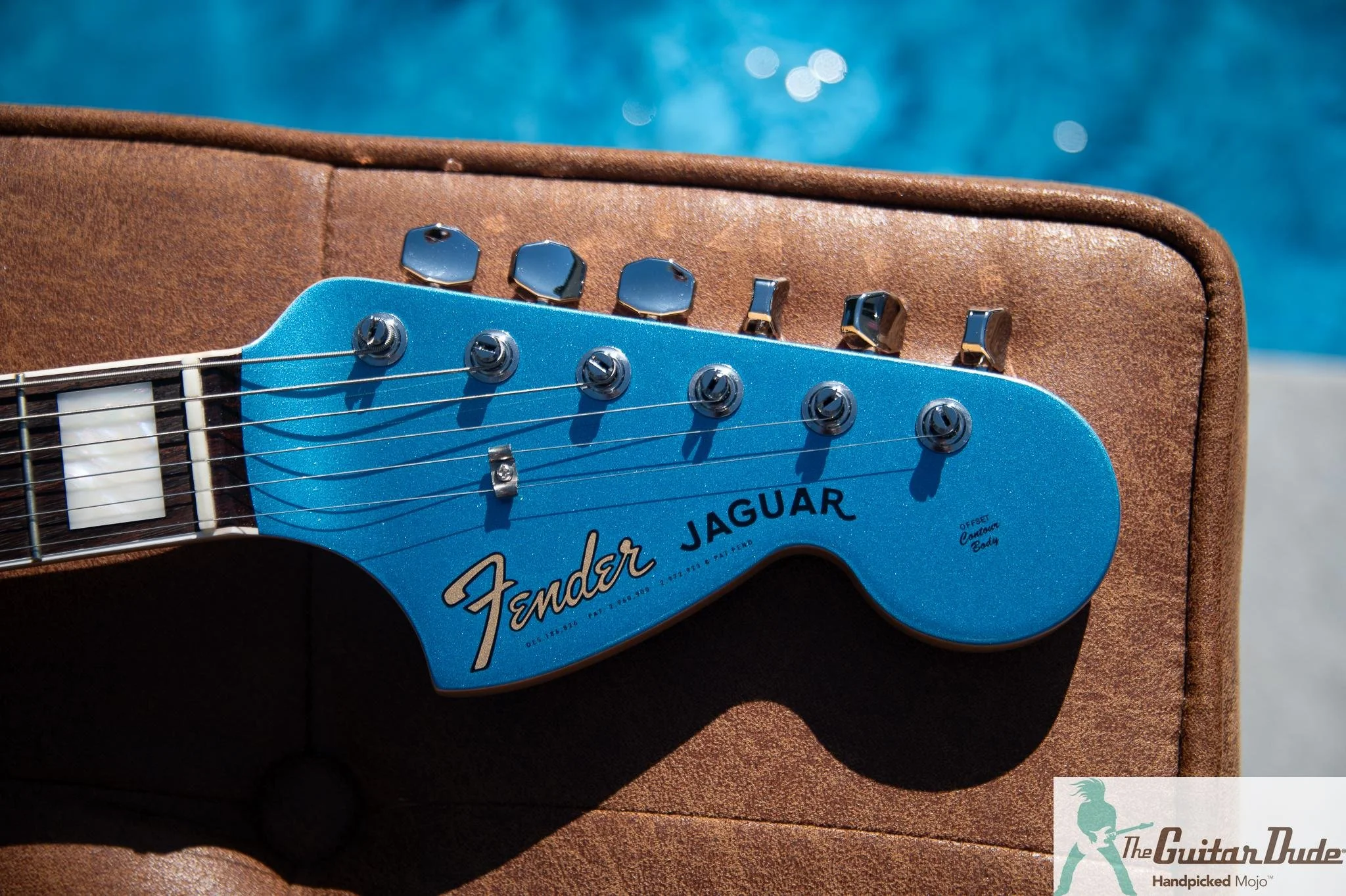Picture this: a sleek, glossy Lake Placid Blue finish that captures the serene beauty of a crystal-clear mountain lake under bright sunlight. It’s deep, vibrant, and instantly eye-catching — the kind of color that makes people stop and stare. Whether you’re gliding through dreamy indie chords or riding the waves of aggressive surf rock, this Jaguar looks as fresh and inviting as a perfect summer dip.