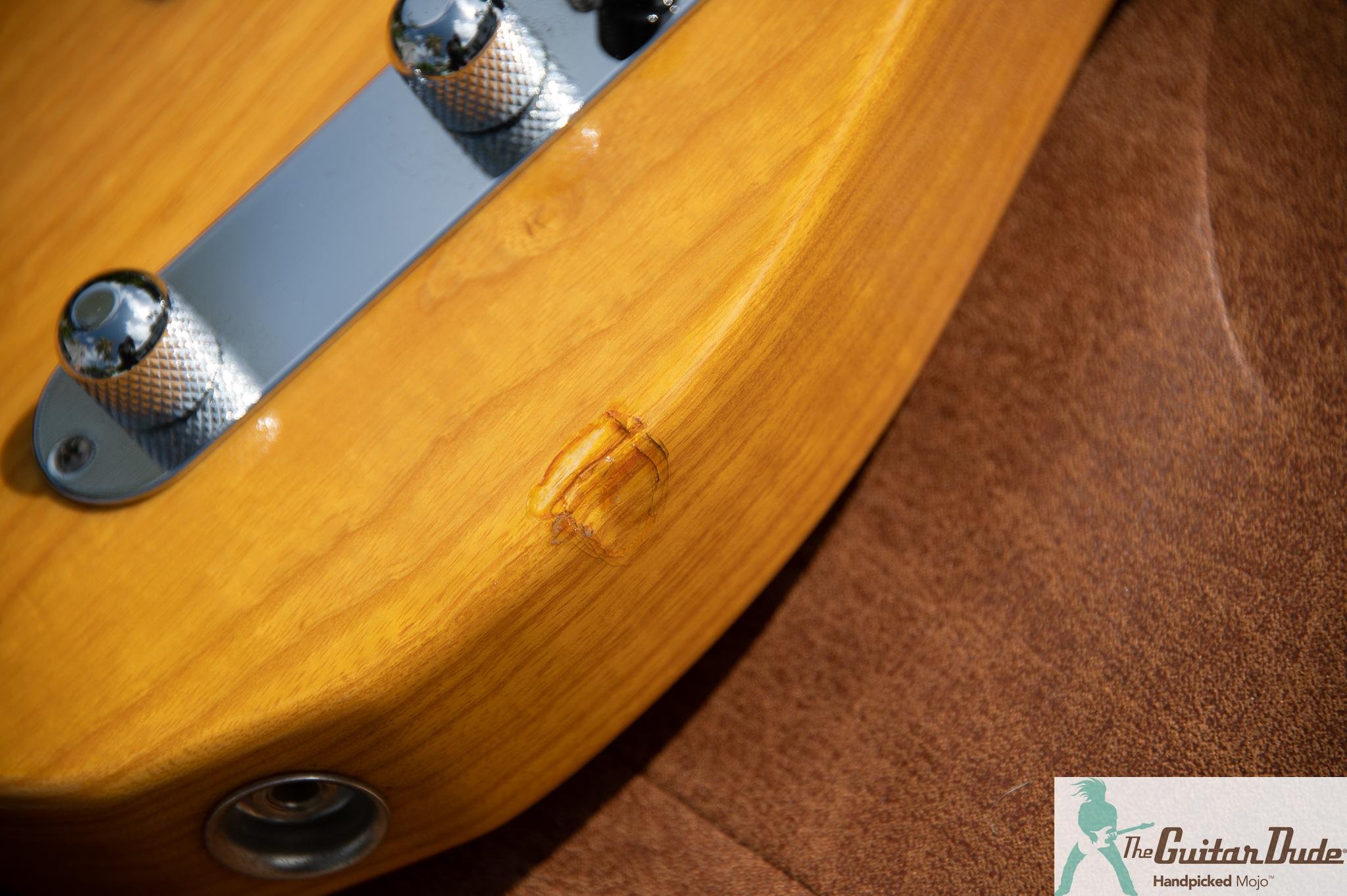 Visually it’s a stunner. The finish glows with that deep, rich vintage-inspired color that only time and Japanese nitro can produce. Hardware shines. Binding and inlays are crisp. The only imperfection is a single repaired and fully solidified ding on the front edge—professionally addressed, so it’s rock-solid with zero impact on tone, sustain, or structural integrity. Everywhere else? Near-mint. No cracks, no additional dings, no rash, no fret wear. It looks and plays like a guitar that’s been lovingly kept in a climate-controlled vault since the day it left the factory.
