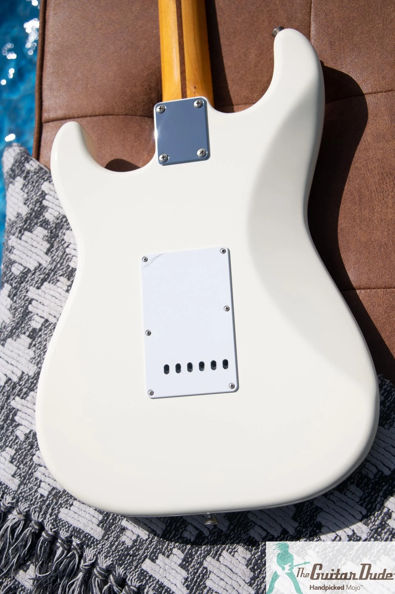It has a full-sounding basswood body and bright Strat single coil pickups, this modern and versatile instrument goes well with drive sounds. This guitar is a real pleasure to play and is ready to rock. It was professionally set up with smooth, low action and perfect intonation. The frets have zero wear and have been polished to shine like a mirror, looking better than when it left the factory. It is a true homage to the the golden era Pre-CBS Strat. This guitar is acoustically resonant and well balanced. It has a sweet maple neck and fretboard. The radius of the fretboard is a vintage correct 7.25 with a nice feel in your hands. just a perfect Strat that is ready for the spotlight. Bring this baby home and make her your main squeeze.