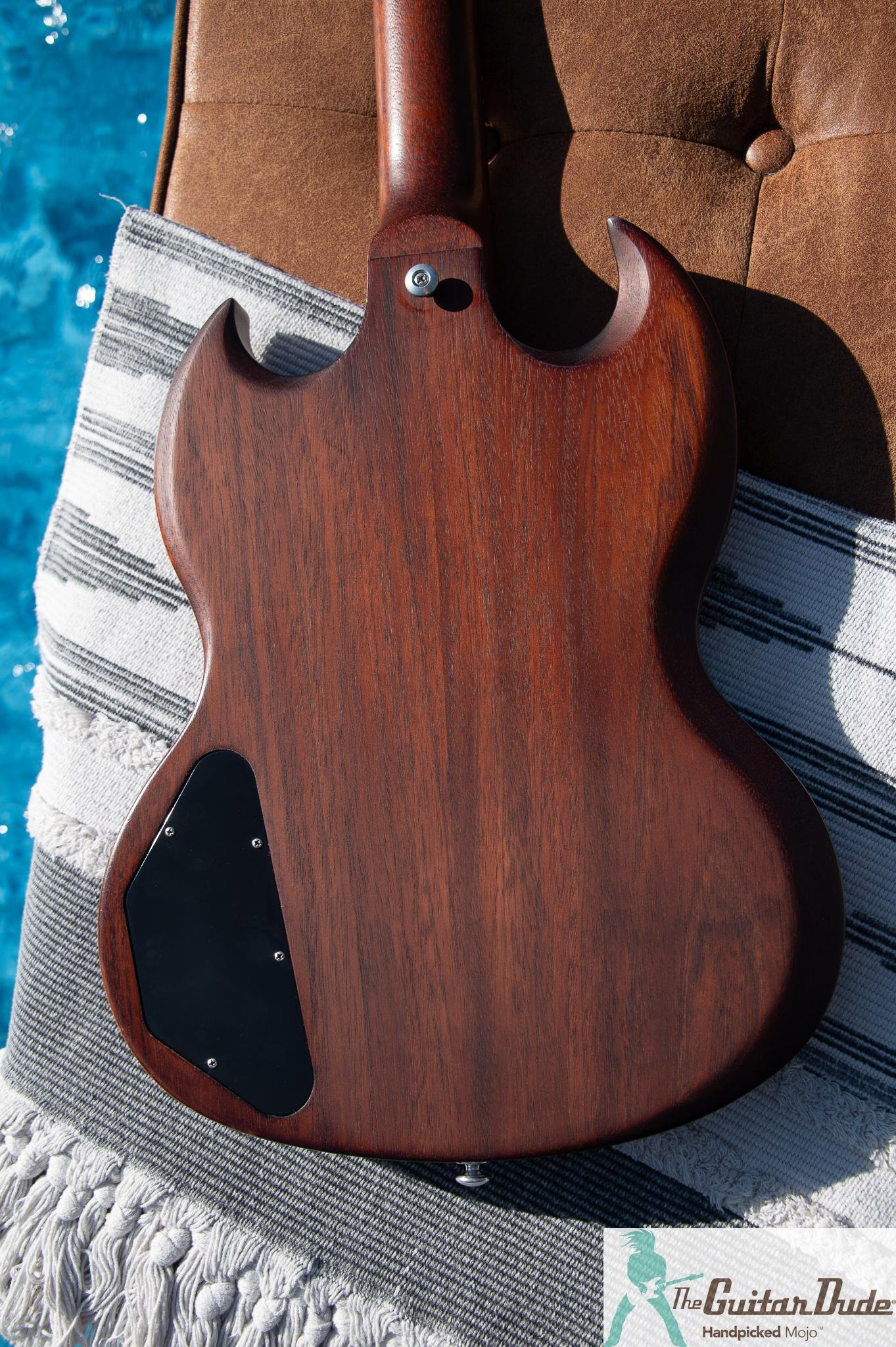 Gibson's SG Bass Faded wears a gorgeous nitrocellulose lacquer finish. Nitro finishes (a standard back in the day) are significantly thinner than today's polyurethane finishes, allowing the guitar to "breathe." Nitro finishes not only look vintage-y wonderful, they also enhance the instrument's tonal qualities. The SG Bass Faded has the look and feel of a well-aged classic.
