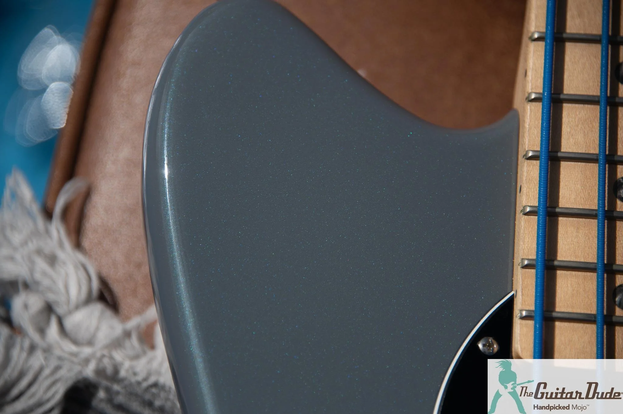 Dressed in a shimmering Gray Pearl gloss over a lightweight alder body, this beauty catches every stage light with a deep, pearlescent glow that shifts from cool silver to smoky graphite. Paired with a sleek 3-ply black pickguard, it’s got that classic offset swagger with a fresh, modern edge. Whether you’re on stage, in the studio, or just jamming at home, this bass looks as killer as it sounds.