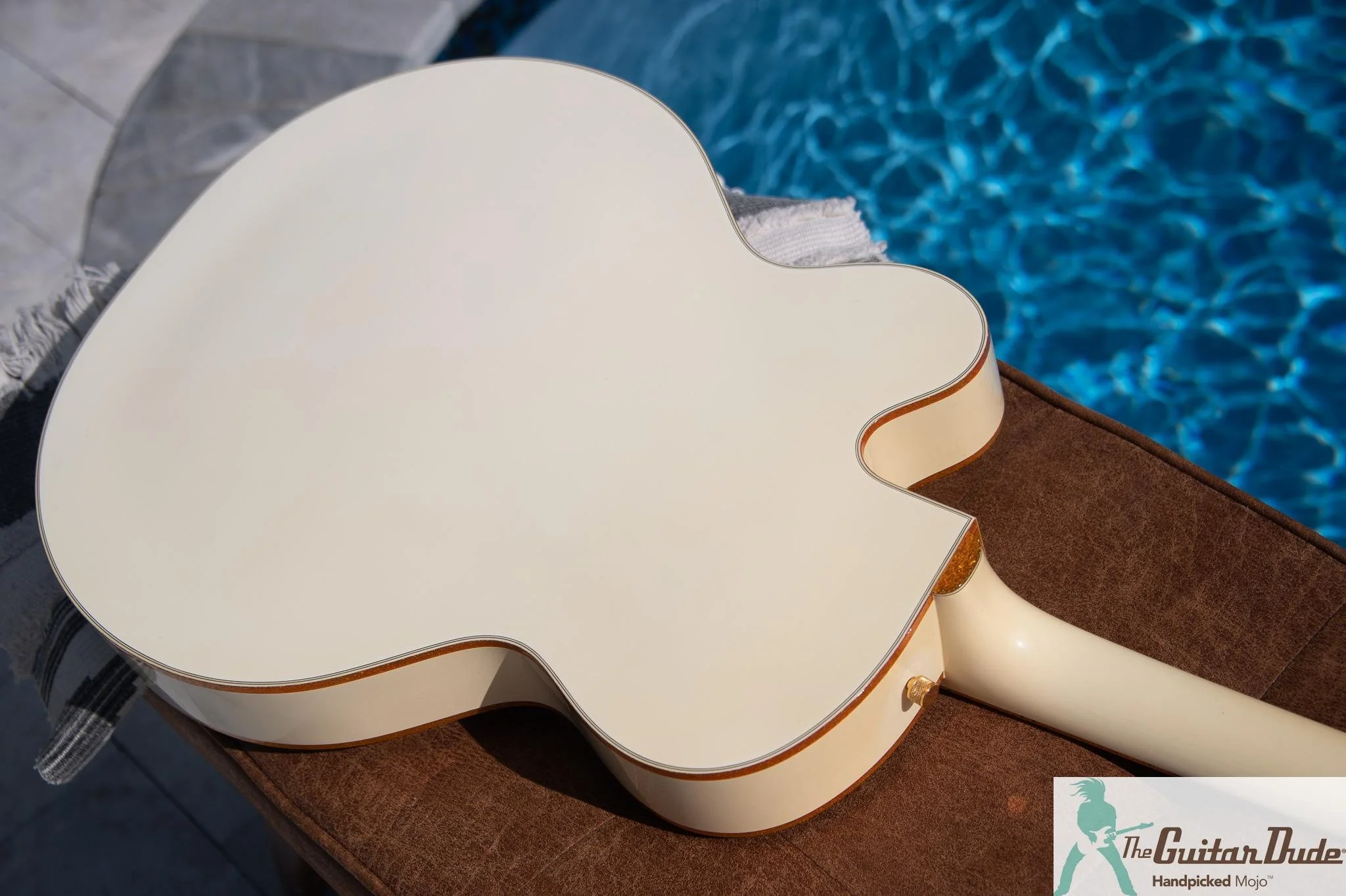 At 15 years young, this White Falcon is in excellent condition for its age, wearing its history like a badge of honor. It has some yellowing of the finish especially on the back of the neck/headstock. A touch of honest play wear on the body tells tales of gigs gone by, adding authentic character without compromising its flawless playability. The gold hardware sports a subtle, natural patina that enhances its vintage allure – think aged whiskey, not wear and tear. The original owner had installed some different tuners leaving extra tuner holes, but they are seamlessly upgraded and concealed beneath a brand-new set of Grover Imperial tuners, ensuring rock-solid tuning stability and bringing it back to factory stock condition.