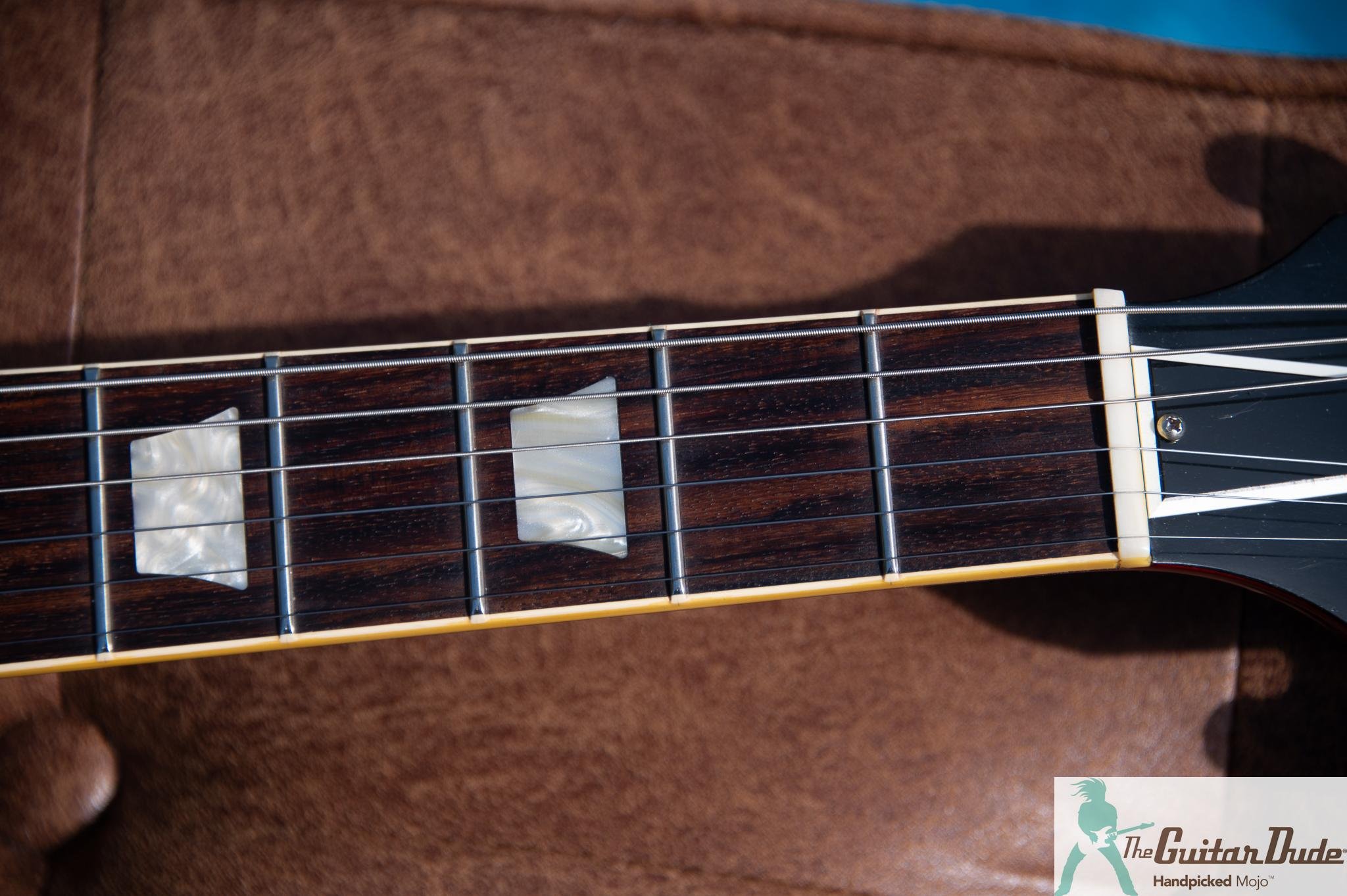 This guitar is professionally set up and dialed in for optimal tone and playability. It has low action with no buzzing or dead spots and is an absolute joy to play. It has been deep cleaned and detailed. All guitars will arrive looking and playing great. The frets look new and the fingerboard was cleaned. (Unfinished Rosewood and Ebony boards get treated with Fret Doctor - a proprietary all natural oil that is the best on the market) It has brand new strings, the action was adjusted, the intonation is spot on and it plays excellent. All the electronics work flawlessly.