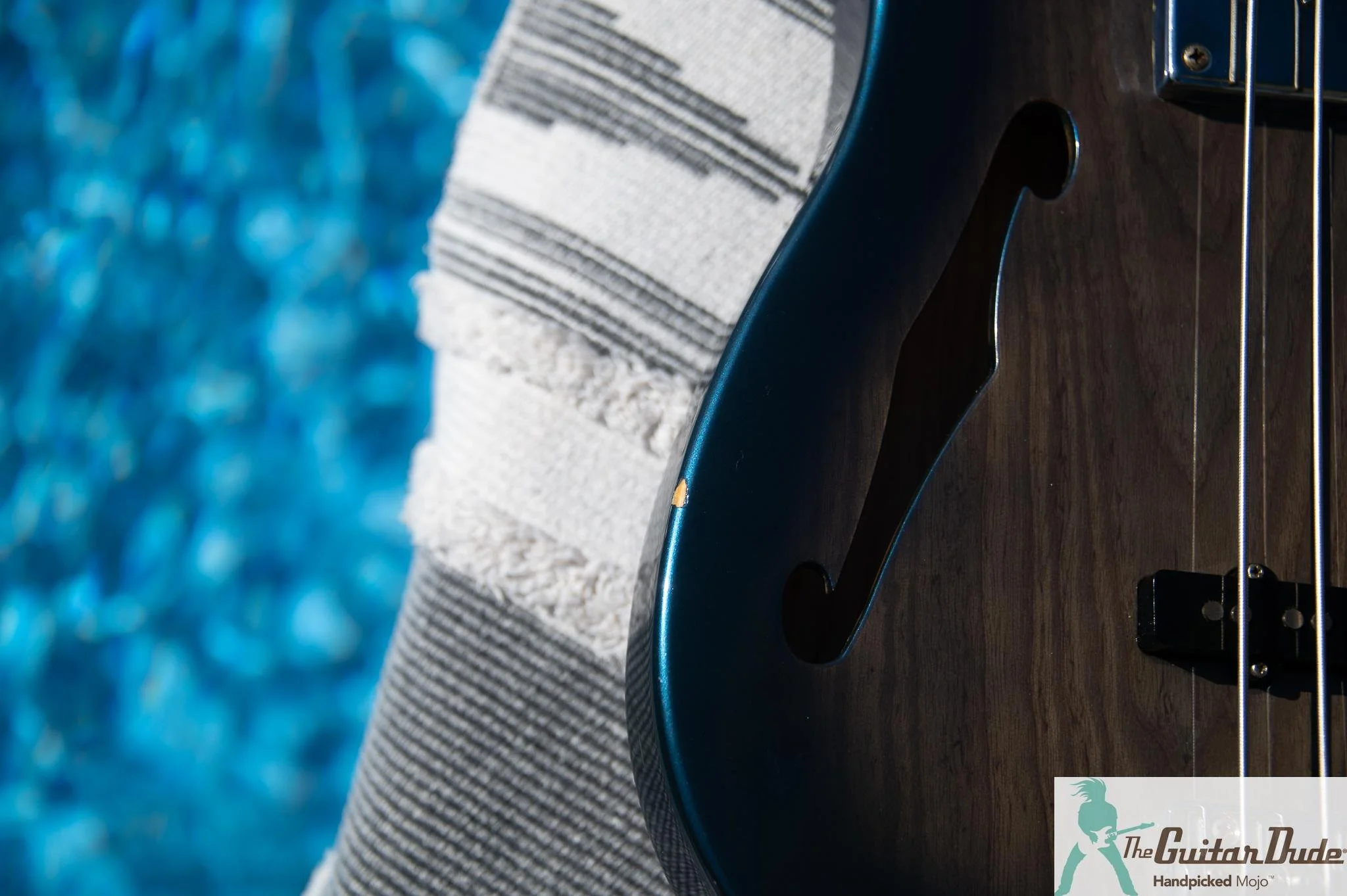 Tonally, this hybrid delivers serious thump. You get that signature Precision Bass midrange punch and thick low-end growl combined with the airy sustain and woody openness that only a thinline ash body can provide. It hits hard with a fat, percussive thump perfect for driving rock, funk, and blues grooves, while the semi-hollow design adds singing mids, sweet highs, and excellent note definition that cuts cleanly through the mix. Whether you’re slapping, picking, or finger-style playing, this bass responds with power, clarity, and vintage-inspired character.